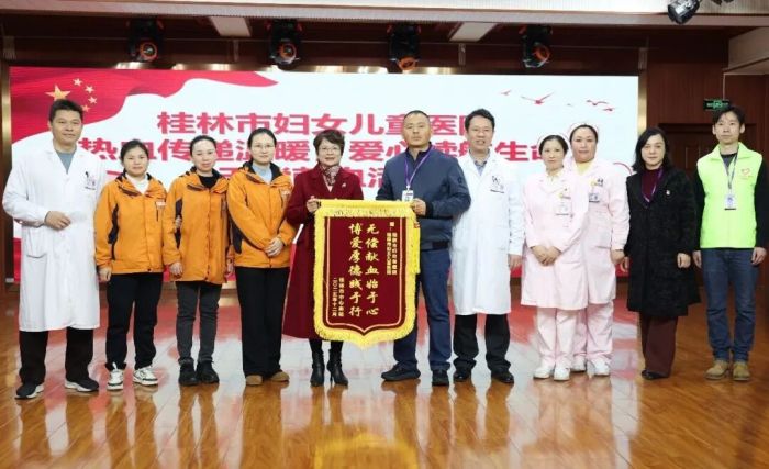 桂林市中心血站向桂林市妇女儿童医院赠送锦旗