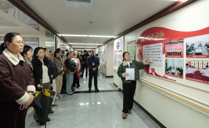在讲解员的引导下,党员们沿着医院发展沿革、党支部品牌建设成果、医院清廉系列故事等多个展区进行参观。长廊以图文并茂、情景交融的形式,系统呈现了我院在党建引领下推进清廉医院建设的实践成果。
