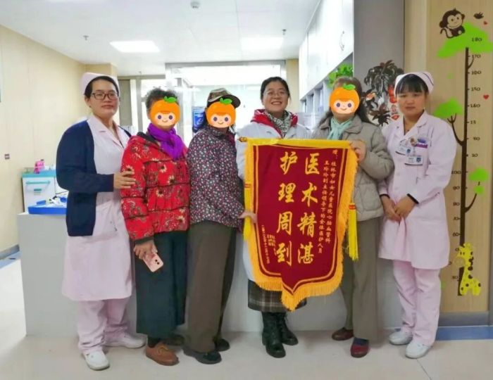 经过一段时间的系统治疗和精心护理,四位阿姨的各项指标明显改善,症状基本消失,达到出院标准。出院前,她们悄悄定制了一面锦旗,并约好要穿上最精神的衣服一起来赠送。