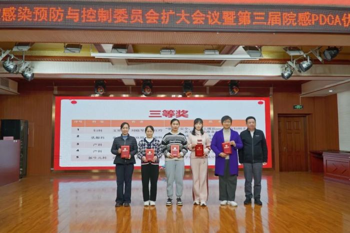 随后,第三届院感PDCA优秀案例颁奖仪式顺利举行。经过专家组严格评审,最终评选出一批优秀案例。其中,重症医学科《提高多重耐药患者防控措施落实率》荣获一等奖;产科、妇女保健科、老年病区3个案例斩获二等奖;妇科、乳腺科等5个案例获评三等奖;产科、儿科等14个案例荣获优秀奖,院领导为获奖代表逐一颁发荣誉证书。