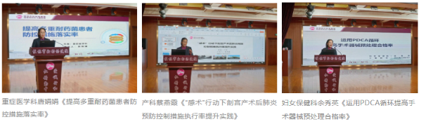 颁奖结束后,3名优秀案例代表依次登台分享。他们结合科室实际阐述了PDCA循环在感控问题整改、流程优化中的具体应用,从问题发现、目标设定、措施实施到效果验证的全流程分享。