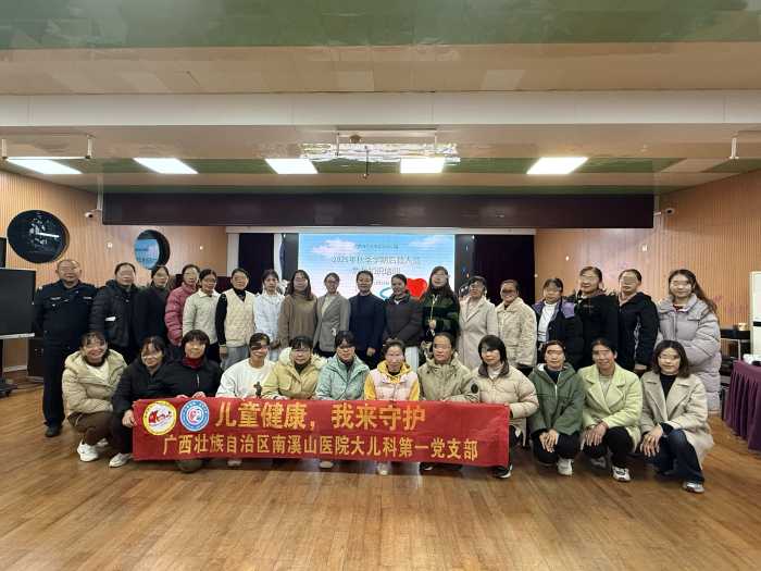 12月23日下午,广西师范大学附属幼儿园(南园)的会议室里,一场面向幼儿园教师的专业健康培训正在举行。广西壮族自治区南溪山医院大儿科第一党支部党员医护团队在支部委员、科室副主任代乐芳的带领下,走进广西师范大学附属幼儿园,为全体教师开展了一场专业实用的健康知识培训,将专业的儿童健康知识带进了校园,转化为教师们日常工作中“用得上、用得好”的实用技能。