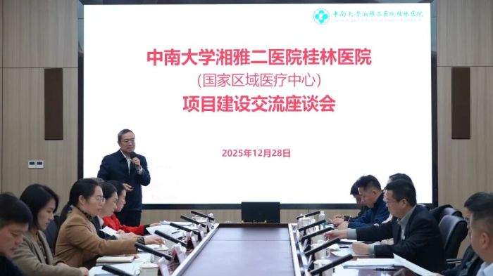 随后召开的座谈会上,桂林医院党委书记、院长刘先领汇报了桂林国家区域医疗中心项目建设运营情况。湘雅二医院党委书记柴湘平汇报了输出医院工作情况。桂林市直各相关部门围绕资金保障、交通优化、医保支持等方面工作进行了交流。