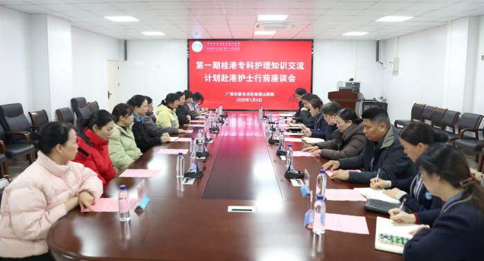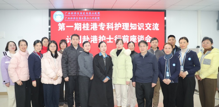 为积极响应并落实广西壮族自治区卫生健康委员会与香港特别行政区医院管理局联合开展的“桂港专科护理知识交流计划”,进一步提升医院专科护理能力与整体医疗服务水平,1月5日,自治区南溪山医院在教学楼一楼中控会议室召开行前座谈会,为即将赴港参加交流计划的康复科护士潘于艳、泌尿外科护士陈司乔送行。医院党委书记柳宏林,副院长唐芬及相关科室负责人出席座谈会。