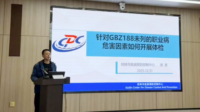 市卫生健康委党组成员、副主任,市疾病预防控制局局长于晖,市卫生健康委综合监督与职业健康科副科长劳万斌,中南大学湘雅二医院桂林医院党委委员、副院长温利辉出席开班仪式。来自全市各职业健康检查机构、市级职业卫生监督人员及职业健康检查质控中心专家委员等80余位医疗专家、行业骨干齐聚一堂,共同见证桂林市职业健康检查质控体系建设的里程碑事件。
