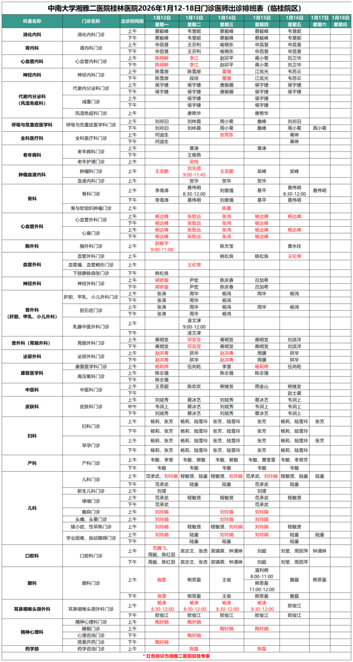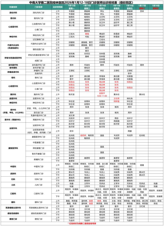 最新门诊安排情况