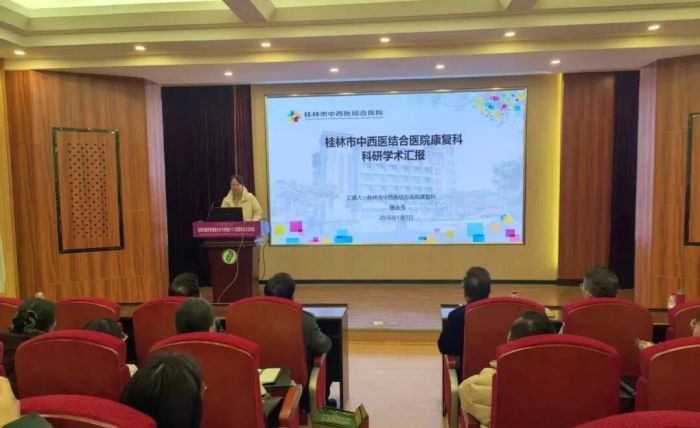 桂林市中西医结合医院唐永秀主任详细阐述了康复科科研工作的现状及科研项目在临床实践中的转化应用情况。康复科已开展超声引导下的小针刀疗法治疗肌肉关节类疼痛疾病,以及壮医活体水蛭疗法应用于痛风急性发作的缓解,进一步探索中医传统技术的现代化应用路径,为患者提供更加优质、高效的康复服务。苏娟主任介绍了内分泌肾病科开展的内分泌代谢病、肾病、糖尿病等多种常见及疑难病症的诊疗工作。唐亚丽副主任紧扣基层卫生科研热点与政策导向,深耕中医特色诊疗领域,以科研赋能社区卫生服务高质量发展。借助本次会议搭建的学术交流平台,双方的科研人员与临床专家围绕具体病例、实验数据以及研究思路展开了深入研讨,提出多项具有前瞻性的合作设想。医院将依托其丰富的临床资源,结合高校在基础学科的科研优势,推动双方在医学科研和临床诊疗水平上实现共同提升。