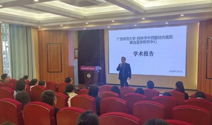 近日,桂林市中西医结合医院与广西师范大学在广西师范大学桂林市中西医结合医院联合医学研究中心共同举办了一场学术报告会。此次盛会邀请了双方多领域的专家学者齐聚一堂,旨在深化医学与科研领域的合作,促进中西医结合事业的高质量发展。