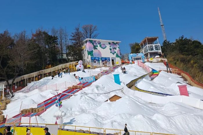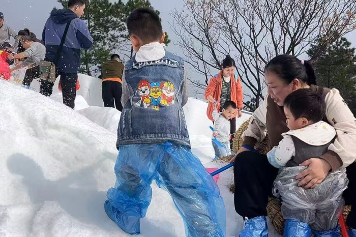事发当天,唐旻(右二)带着孩子在雪地中玩耍
