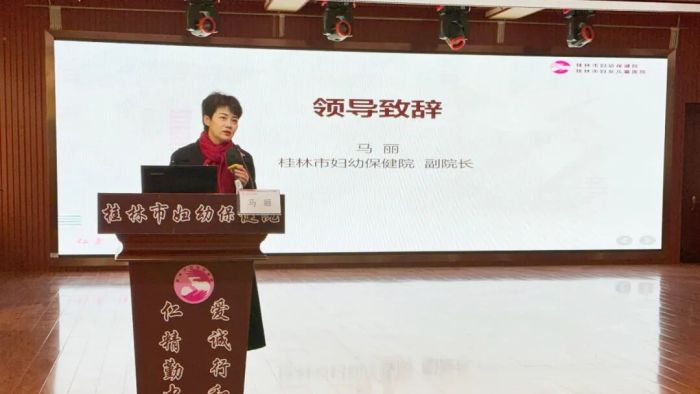 培训开始前,桂林市妇幼保健院副院长马丽致辞。她对广西医科大学第二附属医院梁榕教授的到来表示热烈欢迎和衷心感谢,并指出医疗服务不仅是技术的体现,更是人与人之间的沟通与关怀。在医疗技术不断提升的同时,增强人文沟通能力、展现个人素养,对树立医院形象、促进品牌建设具有重要意义。