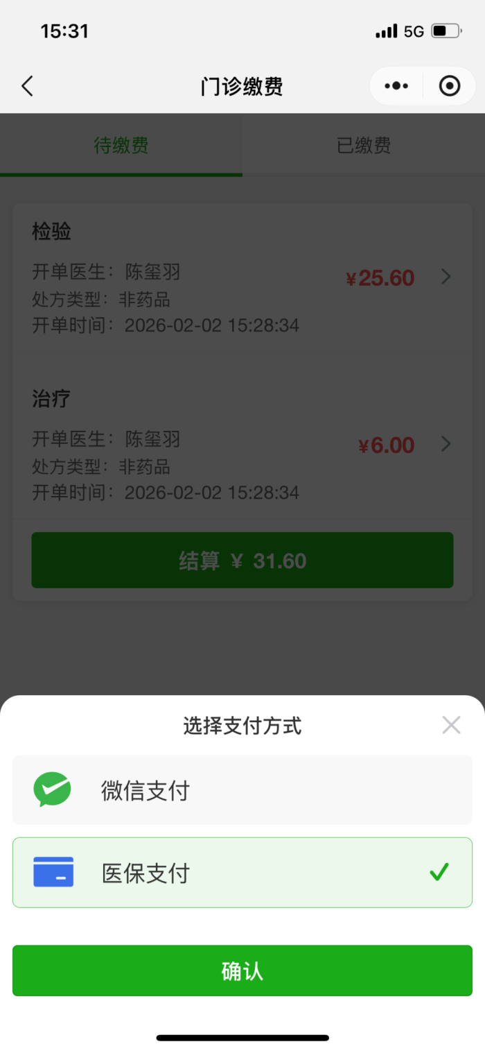 核验通过后,确认费用信息无误,点击【支付】即可完成结算