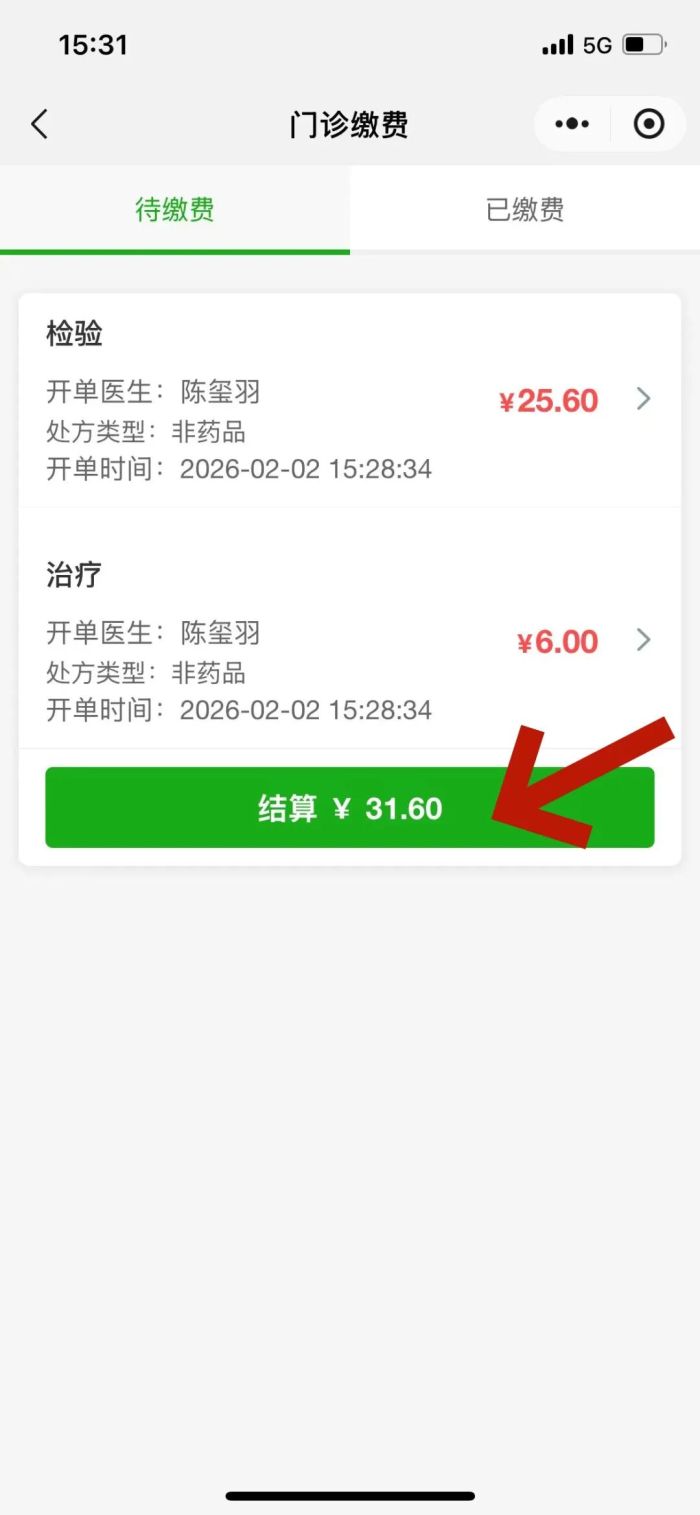 • 若您有多个门诊慢性病种的费用待缴,系统会按病种分别显示待缴项目,需逐笔按照上述流程操作结算。