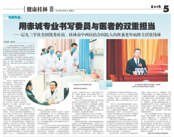 2月10日,《桂林日报》对我院大内科、老年病科主任张伟林进行专题报道