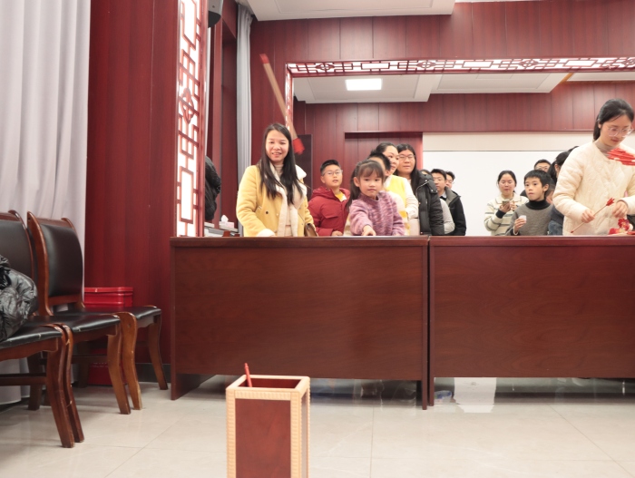 尤为引人注目的是本次游园会特设的“翰墨迎春”送福区。一群小小“未来书法家”受邀莅临,铺开红纸,研墨挥毫。一副副笔触稚嫩却真诚满满、寓意吉祥的春联和“福”字在他们手中诞生。