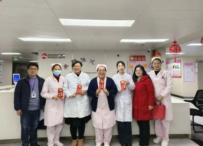 2月16日除夕夜,桂林市妇幼保健院的病房里甜气袭人。院领导带领相关职能科室负责人,分头走进各病区,为春节期间无法出院的患者及家属送上精心准备的“新春零食礼包”。