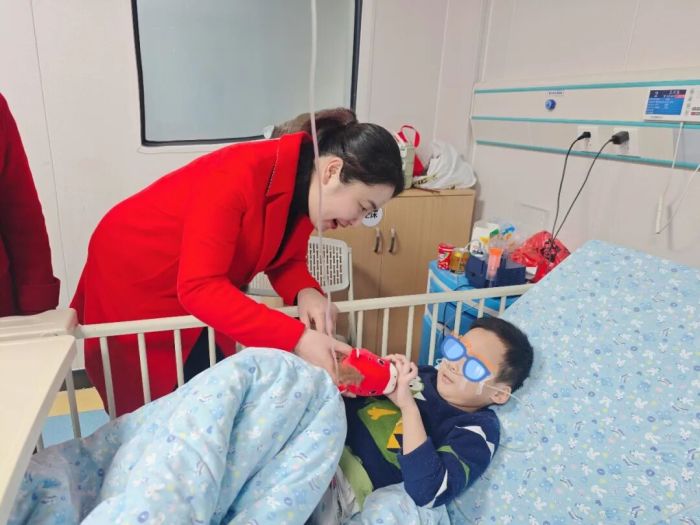“没想到在医院也能过个这么甜的年!”在儿科病房,一位陪护患儿的妈妈接过装着糖果、饼干、的礼包时红了眼眶,一份小小的零食包让冰冷的输液架旁多了一丝家的温度。