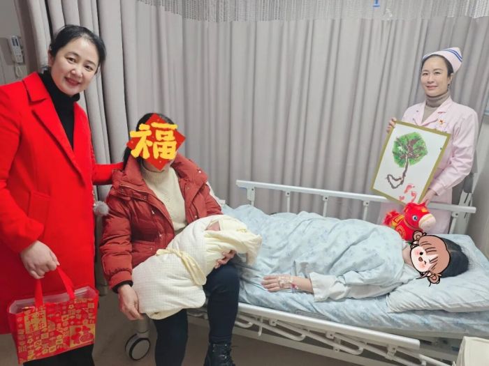 大年初一上午,带着新春的祝福与问候,医院党委书记文莉一行专程来到产科病房,亲切看望慰问这名“马年宝宝”和她的母亲。文莉关切地询问了产妇的身体恢复情况,向宝妈致以节日的祝贺,并为其送上精心准备的新春贺礼,祝愿宝宝茁壮成长。产妇及家属对医院的关心和精湛的医护服务表达了诚挚的感谢,现场洋溢着温馨欢乐的气氛。