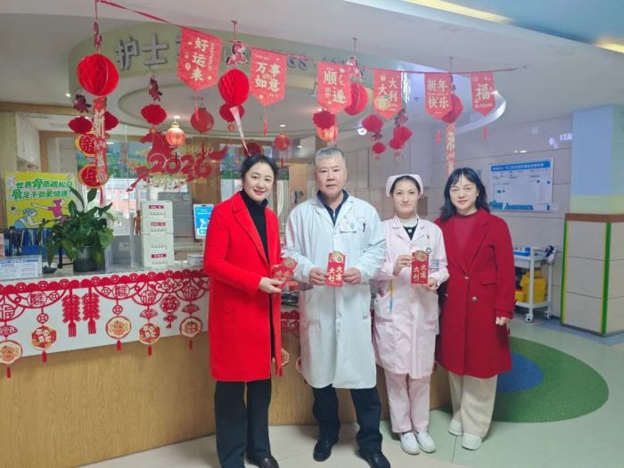 当除夕夜的钟声敲响,医院急诊科、手术室、产科等科室的医护人员仍穿梭于病房与监护仪之间。大年初一清晨,院领导带队再次集结,走访慰问除夕至今持续奋战的各岗位职工。