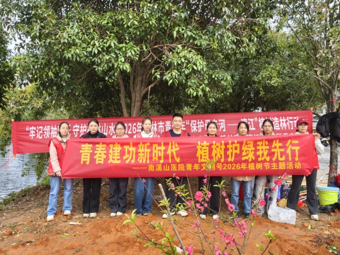 3月10日上午,广西壮族自治区南溪山医院团委积极响应团桂林市委号召,组织青年志愿者赴桂林穿山公园江畔,参与“牢记领袖嘱托 守护桂林山水”2026年桂林市青少年“保护母亲河-漓江”植树造林行动,为建设桂林世界级旅游城市贡献青春力量。
