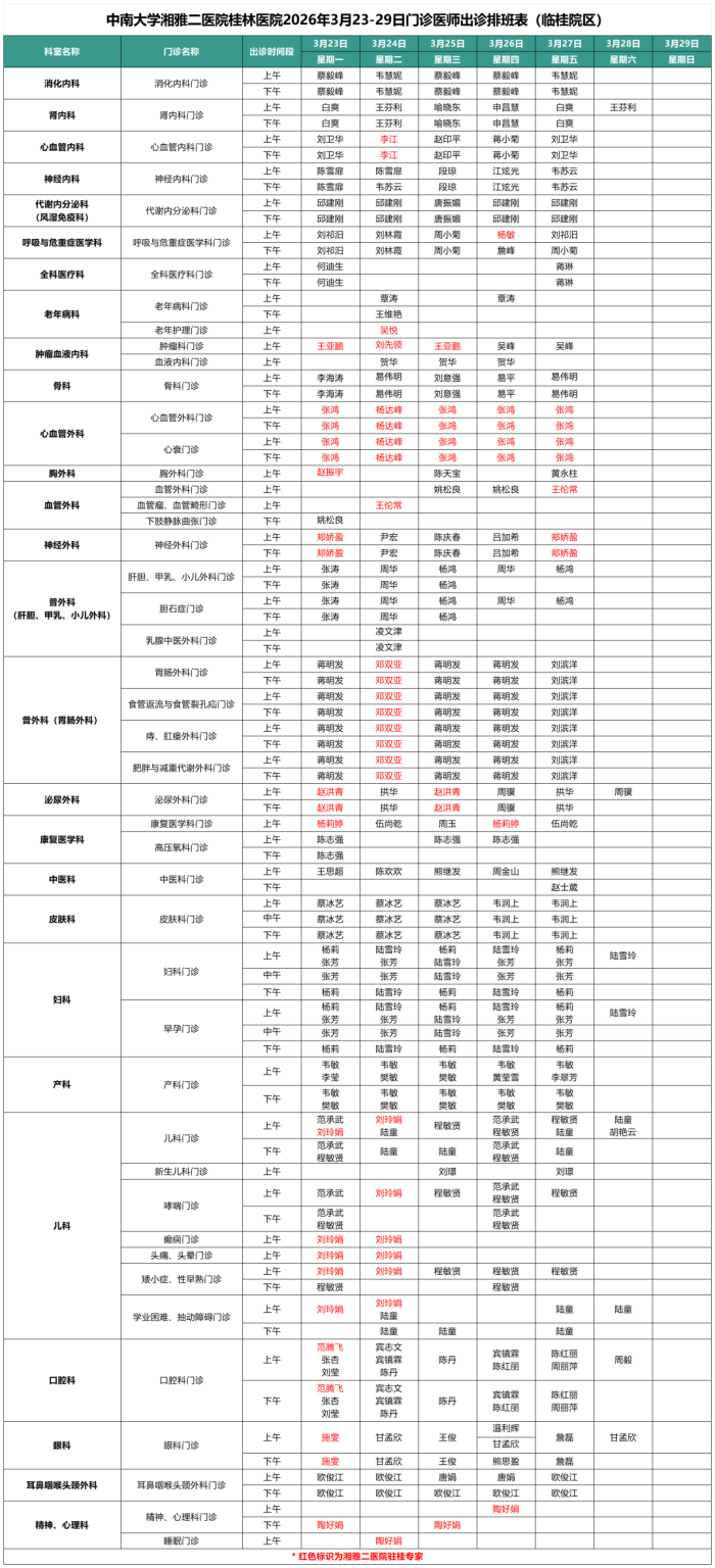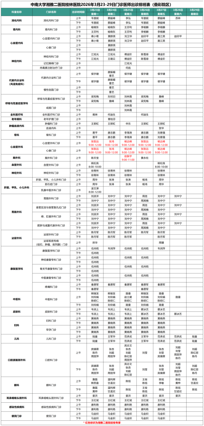 最新门诊安排情况