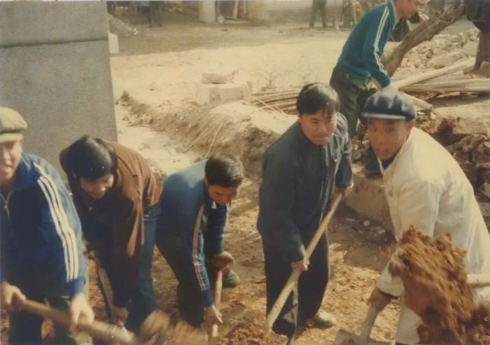 当年建设医院的老照片(左四为蒋朝旭)