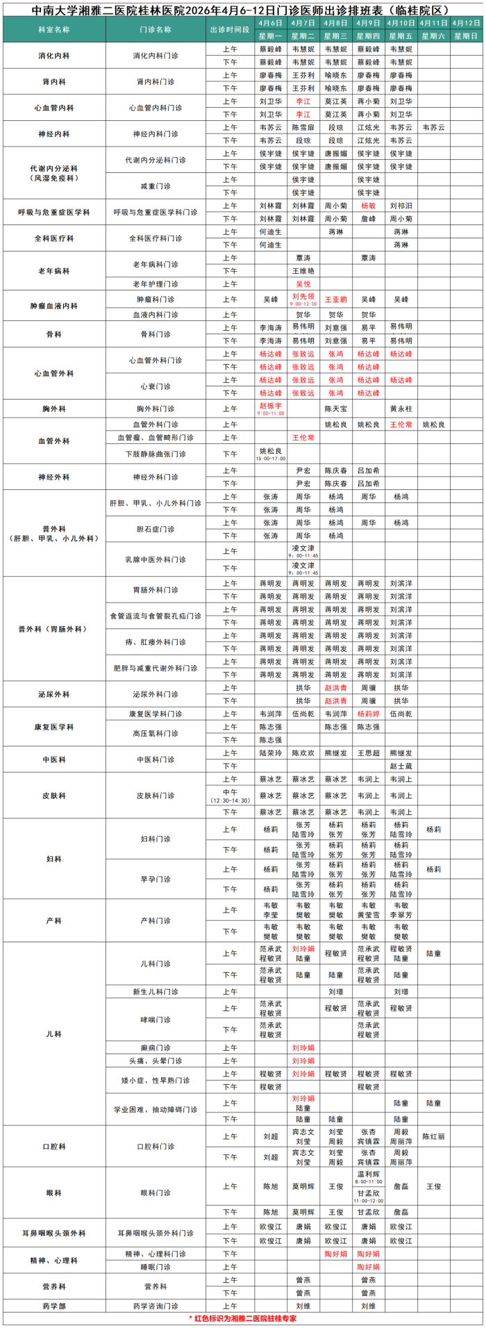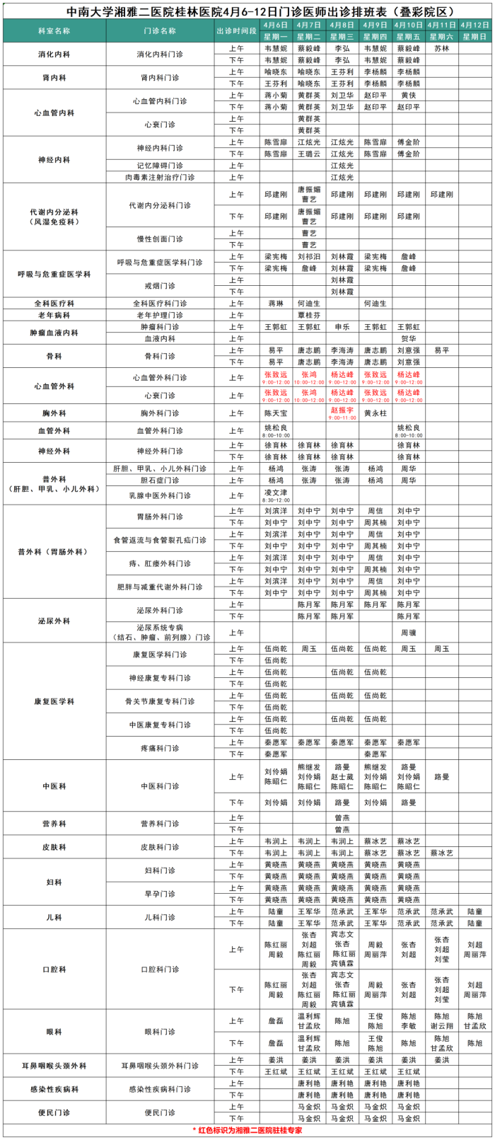 最新门诊安排情况