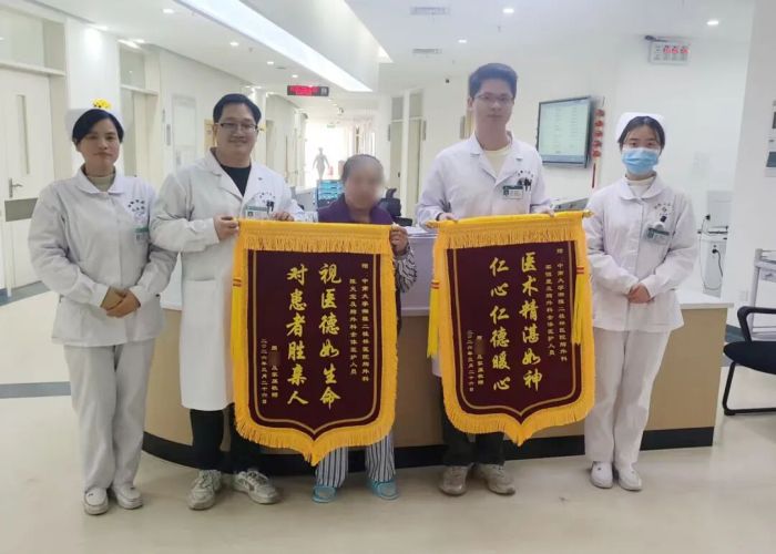 周阿姨及家属对医院的诊疗技术与医护服务给予高度评价,出院时,她与家属向胸外科团队赠送锦旗表达感谢:“感谢医护人员的精心治疗和护理,让我恢复得这么好。”朴实的话语,既凝聚着医患之间的信任与温情,也生动诠释了医院始终坚守的“以患者为中心”的服务理念。