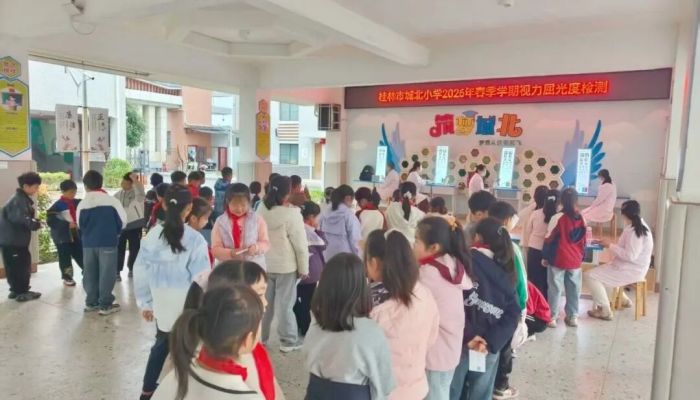 儿童青少年视力健康,关乎孩子的成长未来,更是家庭与社会共同关注的民生大事。为全面落实儿童青少年近视防控工作,及时发现学龄前及学龄儿童视力隐患,做到早筛查、早预警、早干预,3月26日,桂林市妇女儿童医院走进桂林市城北小学,为全校近3000名学生提供免费视力及屈光筛查服务,用专业医疗力量守护孩子们的明亮双眼,用暖心行动践行妇幼医疗机构的使命与担当。