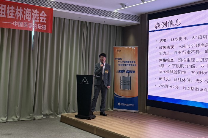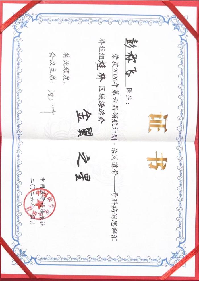 彭称飞医生现为广西壮族自治区南溪山医院脊柱外科主治医师,长期从事脊柱退行性疾病、脊柱创伤及微创手术的临床与科研工作。此次获奖不仅展现了他个人扎实的学术素养和精湛的临床思辨能力,也体现了自治区南溪山医院脊柱外科团队在青年医师培养和学科建设方面取得的显著成效。