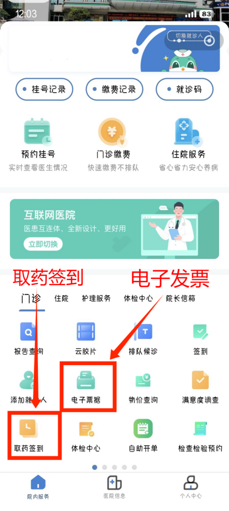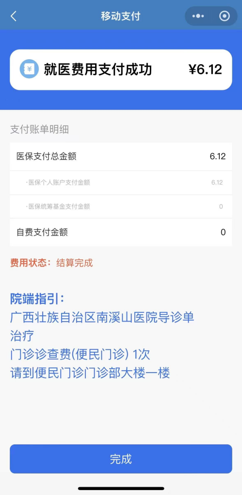 支付成功后,患者可直接凭指引前往相关科室进行检验检查或取药,小程序可直接签到和查看电子发票。