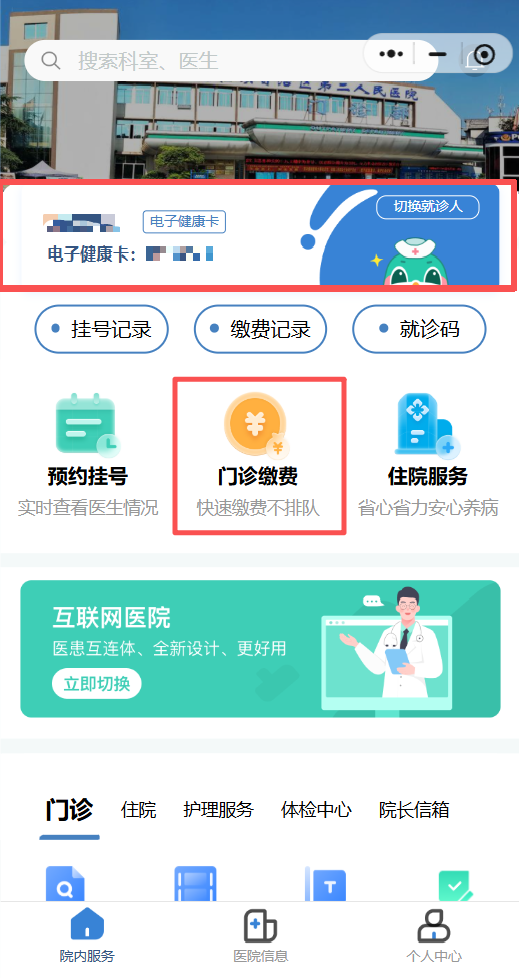 患者通过微信公众号或小程序,无需排队即可完成挂号、就诊、医保结算全流程。该服务目前覆盖了职工医保患者及城乡居民医保患者(含省内及省外异地就医人员)。