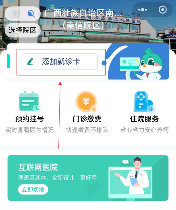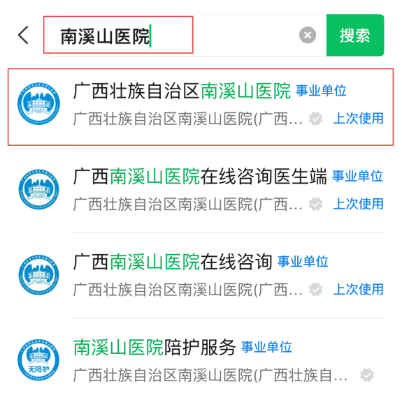 第一步:患者只需通过微信搜索“南溪山医院”或扫描二维码进入医院小程序。
