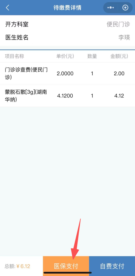 第三步:点击“门诊缴费”,随后选择“医保支付”。