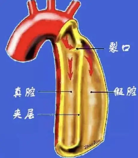 典型症状是突发剧烈撕裂样或刀割样胸痛,常放射至后背或腹部,可伴有血压骤升、休克等。高血压是其最主要诱因。此病极其凶险,一旦怀疑,必须立即就医,争取分秒抢救时间。