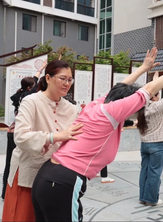 在我院康养广场,八段锦公益推广课准时开讲。医护人员从“两手托天理三焦”到“背后七颠百病消”,逐一分解动作,讲解呼吸要领与养生功效。伴着舒缓的口令,参与者们舒展身体、调整气息。不少路过的患者和家属加入练习团队,现场洋溢着积极而温暖的氛围。课程结束后,医护人员还向大家发放了八段锦动作图解手册,方便大家回家后继续练习,并耐心解答了大家关于八段锦动作细节和日常养生的问题。此次八段锦公益课,不仅让参与者学到了实用的养生功法,更传递了中医“治未病”的健康理念,让大家在轻松愉悦的氛围中感受传统中医药文化的深厚底蕴和独特魅力。