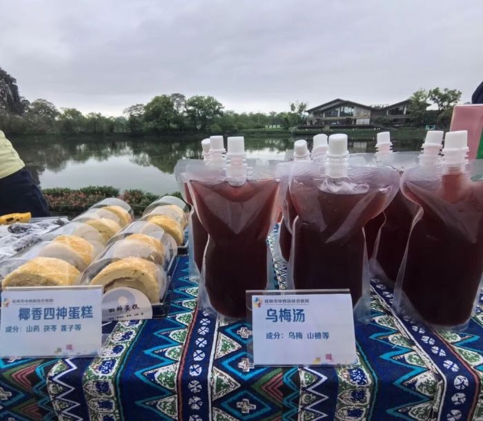 4月14日,在壮族传统节日“三月三”来临之际,桂林市中西医结合医院受邀参加由七星区委宣传部、七星区街道工委联合主办的“雅韵山歌迎贵宾 古韵非遗润民心”主题文化活动。同日清晨,医院在康养广场同步开展八段锦公益推广课程。通过健康义诊、文创展示、药膳体验及功法教学等多元化形式,将中医药健康服务深入基层,切实惠及群众,获得广泛好评。