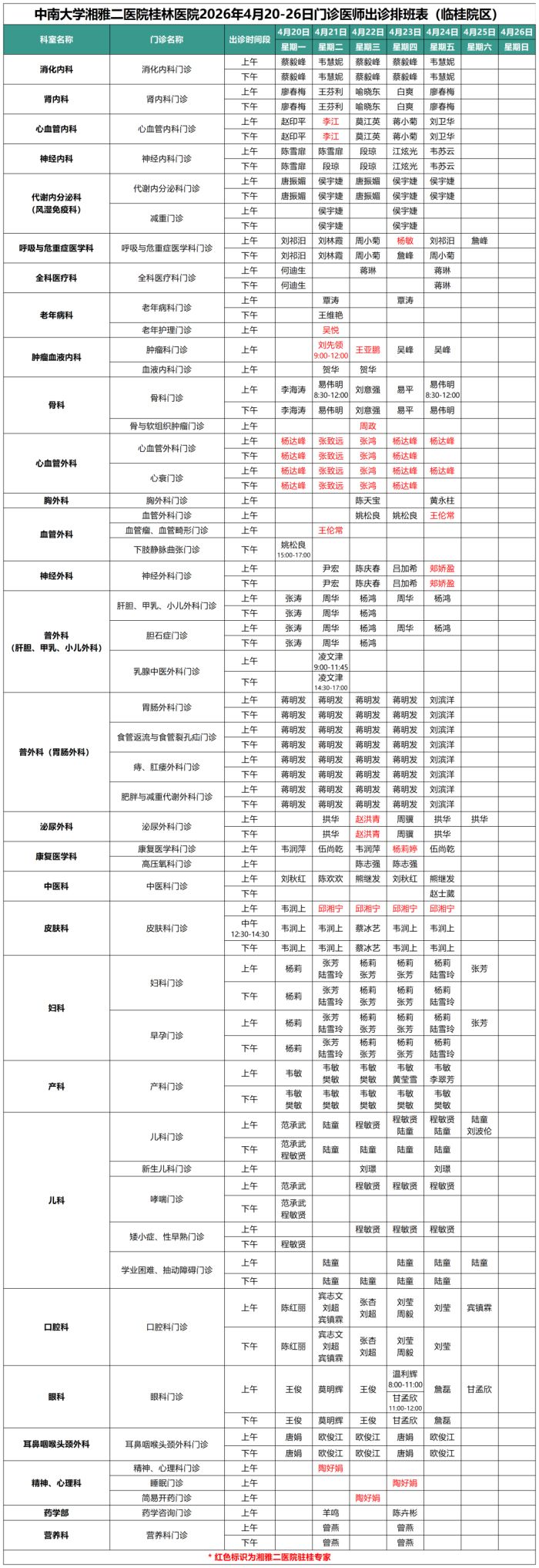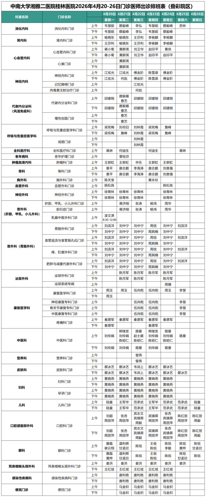 4月20日-4月26日门诊信息