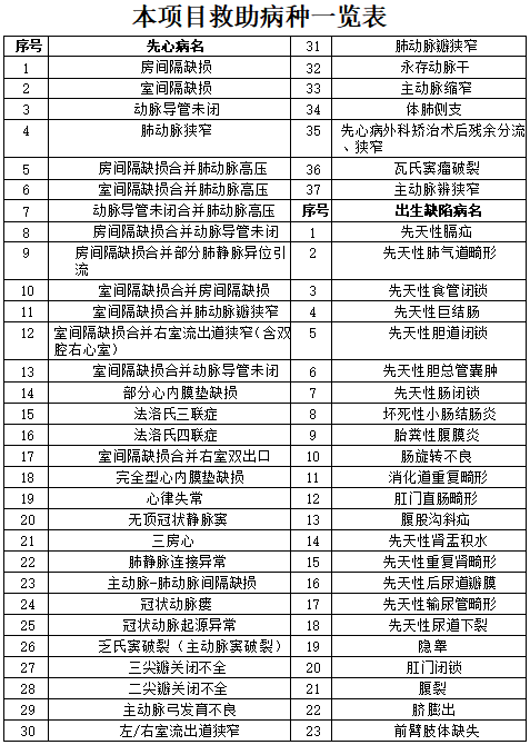 李家杰专项基金“青春逐梦行动”——润心培根项目救助病种一览表如下: